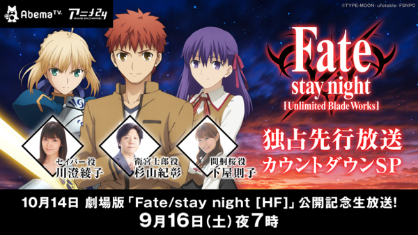 劇場版 Fate Stay Night Hf 公開記念 Tvアニメ Fate Stay Night Ubw 独占先行放送カウントダウンspに杉山紀彰 下屋則子 川澄綾子ら出演 ニュース Abema Times